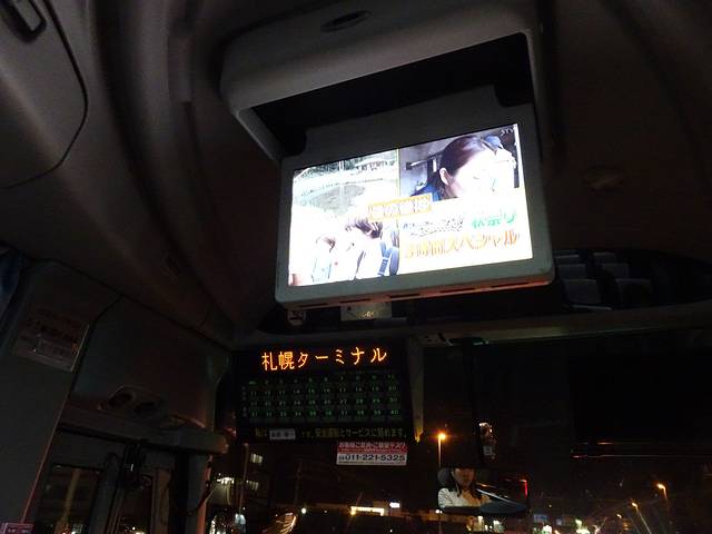 乘坐下午4点左右的班车回到新千岁机场,然后拿了行李赶往札幌站,在那里乘坐6点半的巴士前往旭川,正好赶上车子,车票是先上车拿了整理券等到了以后再付钱,约2千日币左右,大约在8点半的时候到达旭川站。