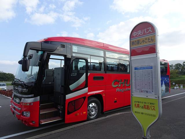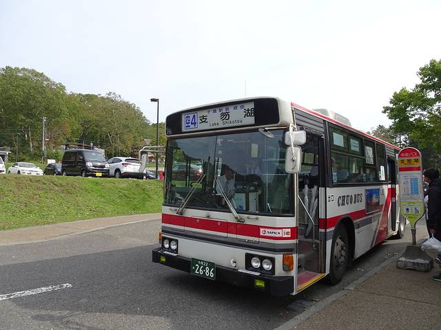 去支笏湖的交通比较复杂,先要乘到新千岁机场,那里有班车约一个小时就能到,班车会途径千岁站附近,不过为了好找一点,我们还是先乘到了新千岁机场上车。