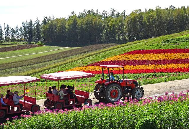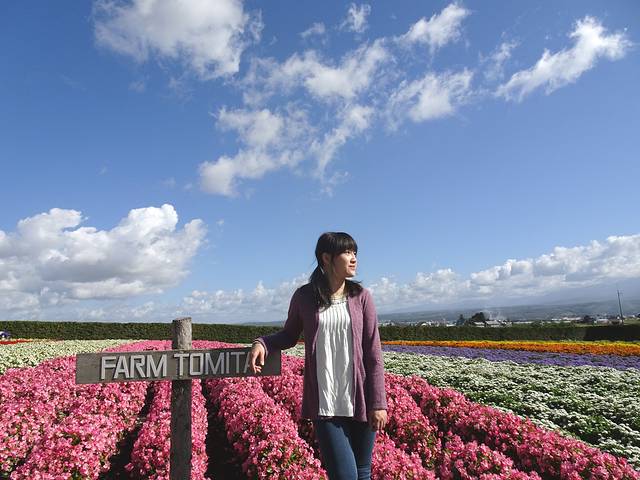 第一站是富田农场,乘到JR中富良野站下来,出站后左转一直往前步行约25分钟就到
