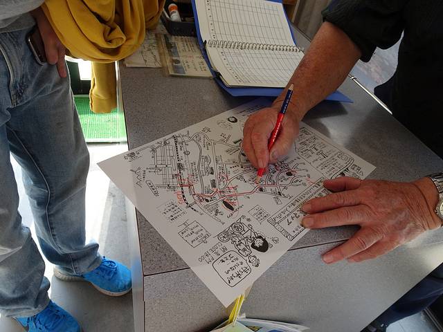 正好碰上另外个人在租车,下午4点才开始租车走拼布之路么。。。店主老爷爷帮他画地图。