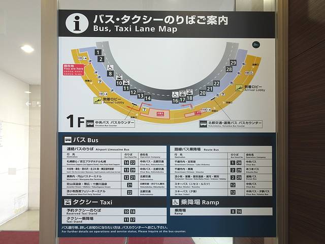 到了新千岁机场,巴士在1和28站台,现在机场里的巴士点买好票,当天我们还带着行李,把行李寄存在机场,等下支笏湖回来后就直接去旭川了。