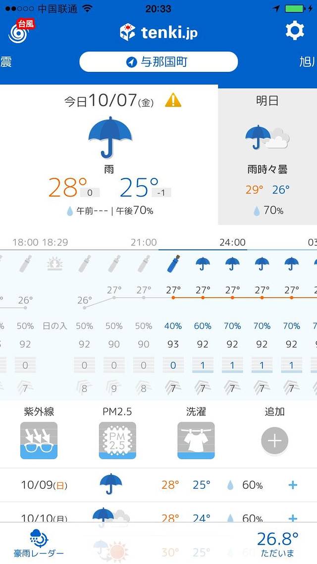推荐一个日本天气预报的APP ,个人感觉大部分时候还是挺准的。