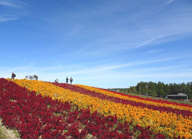 沿着刚才的斜坡上去右手边就是四季彩之丘的入口,门外看不到里面的样子,一进去以后真的是豁然开朗啊,这个季节仍然有非常多的花田,真的挺美的。之前在网上看到有人说四季彩之丘最好是下午去,因为上午是逆光,个人感觉影响不是很大,可能有部分角度会使照片有些暗,但是大部分地方是没有问题的。