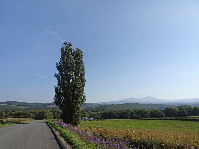 路上风光。天气还挺帮忙的,一开始迷雾很重,我很担心天气会不好,之后到了美瑛那里附近天气就非常好了。