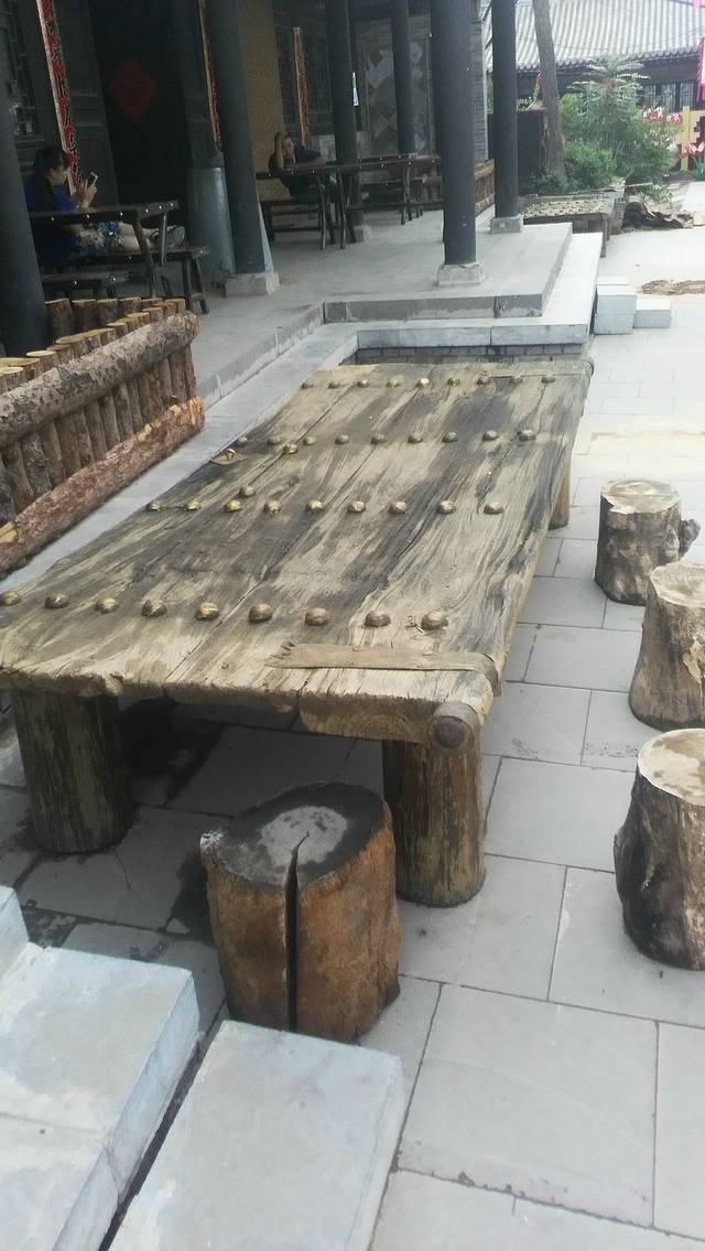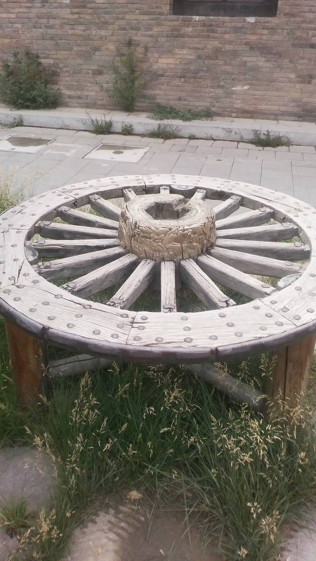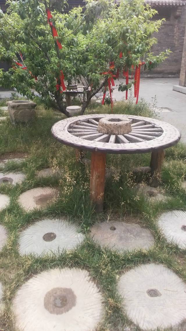 在街道外面,有着破旧门扇的桌子,而在内堂中,则是用破旧的车轮做的桌面,野草在磨盘组成的图案之间肆意的生长着。看到这样的东西,一种岁月的沧桑感忽然如同野草一样,在心底开始蔓延。