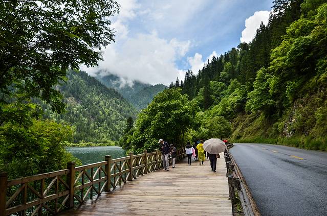 九寨沟的天气可以说是非常的奇特,也许一会儿是大晴天一会儿磅礴大雨。也有可能一边是晴天一边是下雨天。对于九寨沟景区的天气真的可以说是“东边日出西边雨,道是无晴却有晴”来形容是最适合不过的了。因此来到九寨沟必须要携带好雨具,如果是背着单反相机包的话,务必要携带相机包的放水护套。雨后的九寨沟景区也许非常的湿润显得更美,水量更为充沛,但是也有可能造成路面很湿滑而容易摔倒等事故发生。故而山野君在这里提醒诸位驴友们在雨后游玩九寨沟务必要小心路面了。