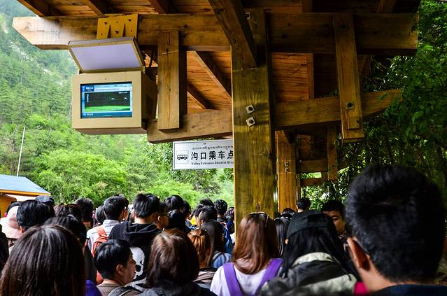 九寨沟景区的观光车是循环开动的,就像我们城市里面的公交车一样有专门的站点,每一个景点都设有一个站台,只要你手上有观光车票,可在规定的站点随意上下车。观光车票是90元,跟门票一起捆绑销售。另外,值得一提的是在观光车上要事先告诉导游在哪里下车,否则车到一个景点不会主动询问游客是否要下车。