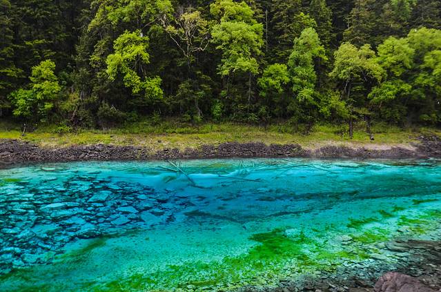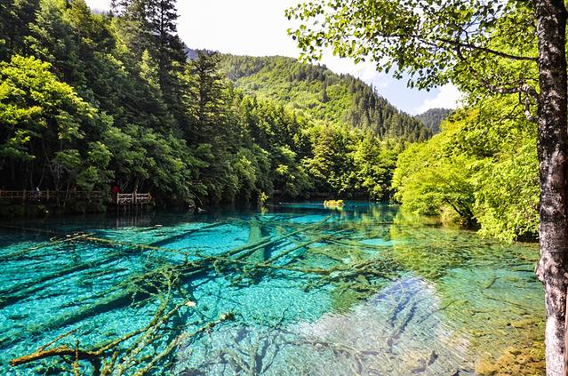 ②、夏季:夏季的九寨沟掩映在苍翠欲滴的浓阴之中,五色的海子、流水梳理着翠绿的树枝与水草,银帘般的瀑布抒发四季中最为恣意的激情。温柔的风吹拂经幡、吹拂树梢,吹拂你流水一样自由的心绪。