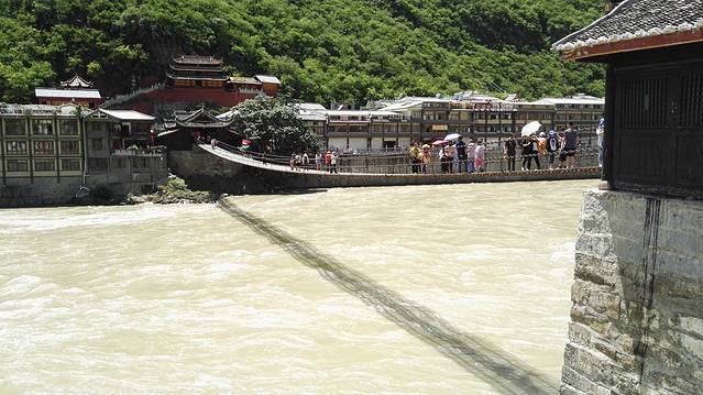 第二天八点半从成都出发,一路上高速。大概中午到泸定,随便找了一家店吃了午饭。顺带一提,从成都到拉萨,一路上基本上是吃的川菜。在泸定,有一个比较出名的旅游景点泸定桥,在大渡河上面。泸定在峡谷里,比较闷热,紫外线也开始大了起来,防晒要从这里就开始啦。