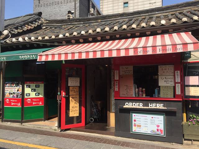 闺蜜一路又开始给我普及知识了。说画廊是延续仁寺洞命脉的关键,整个仁寺洞街区聚集着100多家画廊,游客可在此欣赏到韩国画、板画、雕刻等各种展览。具有代表性的画廊主要有曾是民间美术中心的学古斋、由才华横溢的画家们构建的绘画基地Gana画廊、Gannart中心等。 闺蜜还两眼放光地告诉我,这边还有传统茶馆和餐厅,特别是韩定食,仁寺洞的最正宗。我又白了她一眼,早说我们就不吃北村饺子了啊!想象一下两个姑娘穿着韩服去吃韩定食,一定是个特别美的画面,可惜了~~~~(>_<)~~~~没有肚子吃了。