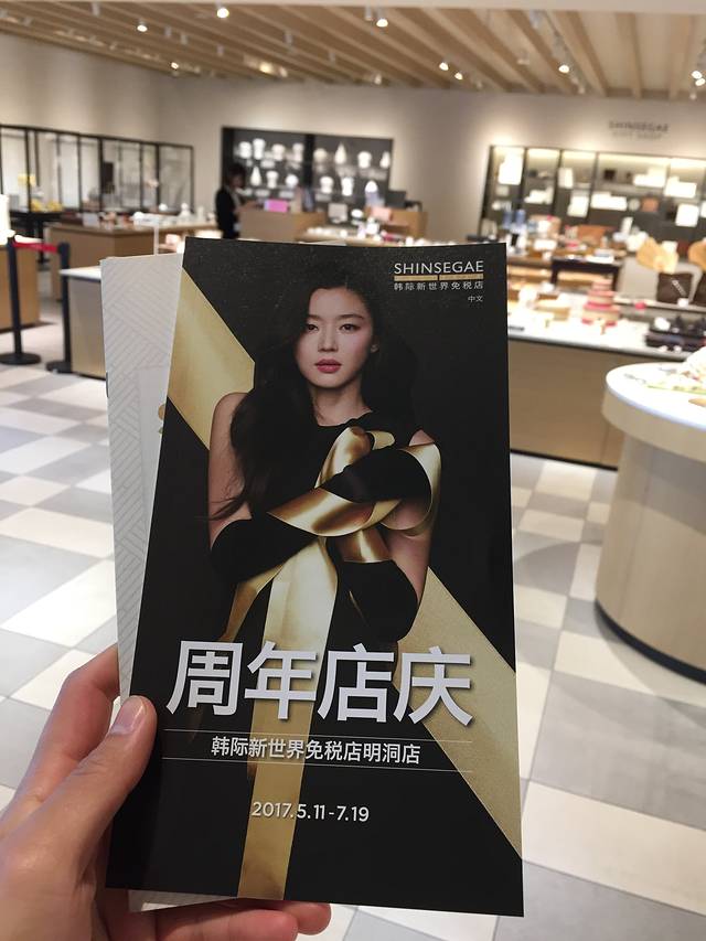 原来这家免税店和新世界百货店同属一栋楼里,开在这么高大上的地方,突然对于它卖的产品就有了信心。来得早不来得巧,没想到我们还赶上了一周年店庆,看上去有好多优惠的样子,好开心,觉得能省一大笔钱呢!我一出电梯,就有工作人员用中文跟我打招呼,还给我送了2本中文指南。