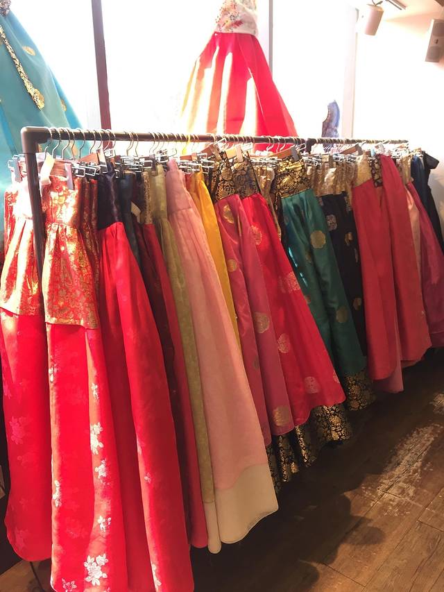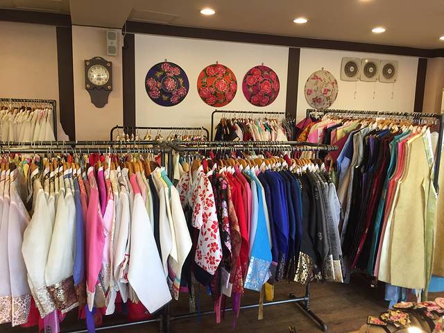 我们选了一家位于街边的2层韩服店,店铺不算太大,但是东西很全,我和闺蜜在里面挑了小半个小时,店里的小姐姐也是各种提供参考意见,服务棒棒哒。(对了,有些店有中文服务哦!)