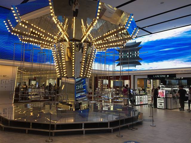 仁寺洞一圈下来,我们看上了不少特色东西。但是问问价钱,确实觉得有些贵。心里很是犹豫,喜欢又觉得不太合算。就这么纠结着往回走的时候,想起来旅店主人提到在我们住的明洞附近的韩际新世界免税店,里面卖的韩国传统工艺品,既上档次又价格合理,突然就心动了想去看看。我和闺蜜一合计,马上去还了韩服,打车往韩际新世界免税店去了。