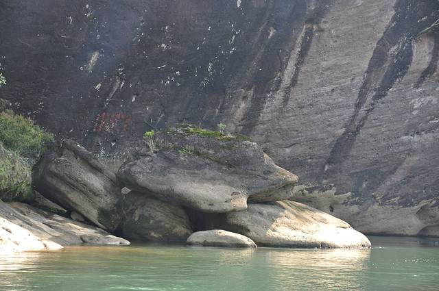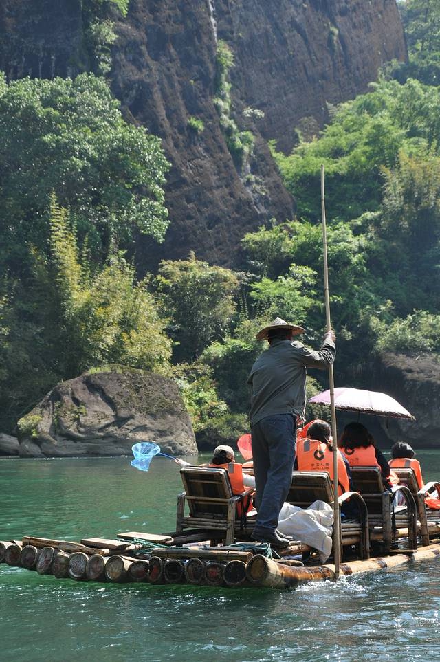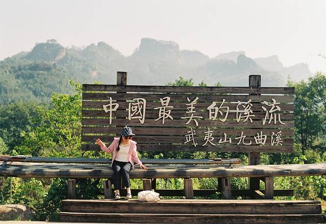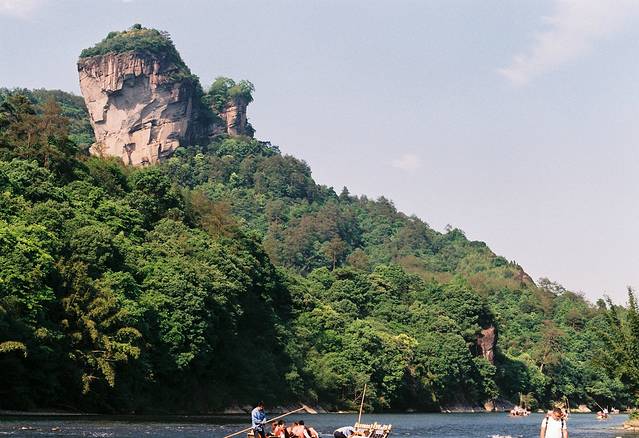 “一曲贯群山,清浅潆九曲。溪边列岩岫,倒影浸寒绿”。很是怀念九曲溪竹筏漂流的日子,那份惬意无语言表。溪水清澈见底,两岸树绿竹翠,令人心旷神怡。微风轻轻拂过我的脸颊,潺潺的流水不时地拍打我的双脚,耳边不时传来哗哗啦啦的流水声,鱼儿不时地跃出水面,这时我就变成了一个面包多多女孩了,鱼儿们应该也很喜欢我吧(因为见到我就不会饿了)。迷醉在九曲溪的画中,久久不愿醒来,艄公那风趣幽默的讲解更为旅途增添无限乐趣。
