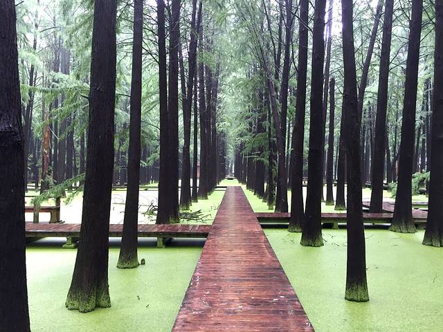 上海那天天气一早就非常热了,所以导游说临时决定把周日和周六的行程换一下,周六先去兴化,周日上午再去泰州湿地,本来导游也是好心,觉得水上森林温度比较低,适合中午到达了就去,第二天早上去湿地可以没下午那么热,谁料到兴化周六上午有点小雨,本来就挺凉爽,第二天到了湿地巨热无比哈,导游的用心安排跟不上天算呐。不过还好影响也不是很大。