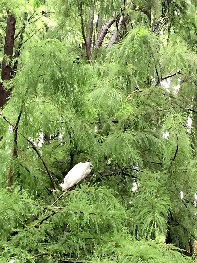 完全沉浸在森林中,超级生态,到处是白鹭,在边上悠闲地找食散步。