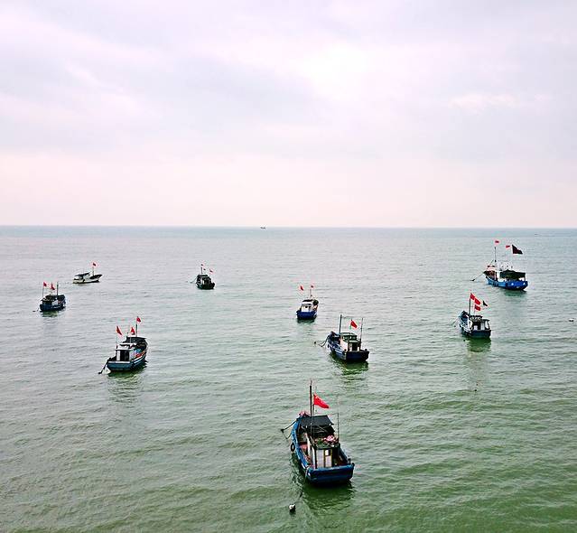 禁渔期内,有很多的渔船停泊在海上,行程一道亮丽的风景线。每一艘船只都插着伟大祖国的气质,每一艘船都是一个家庭的期望,带来美食,带来养家糊口的收获。