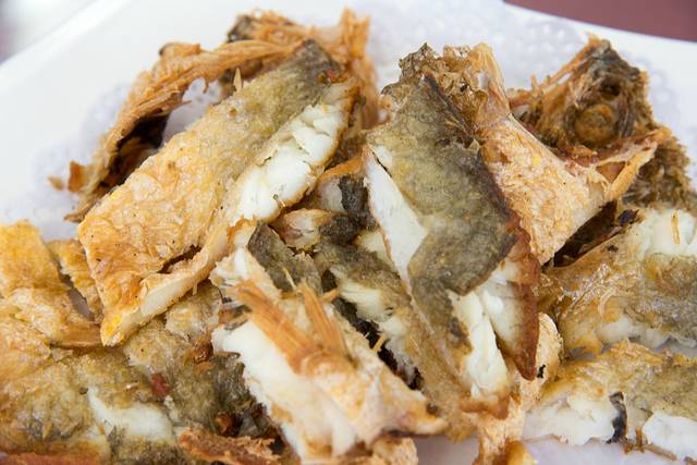 这是经过腌制晒干的鱼,但是并不是将所有的水分全部晒干。微微的太阳能够使鱼更香,在禁渔期内,这是一道非常美味的食物。