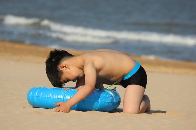 刚到酒店,一群人就按捺不住,立马奔向海边