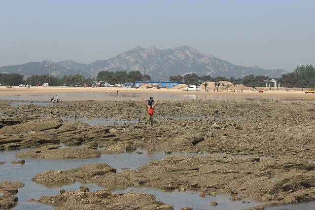 海边退潮后露出的礁石,不由得感概大海的魔力