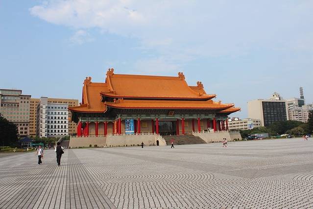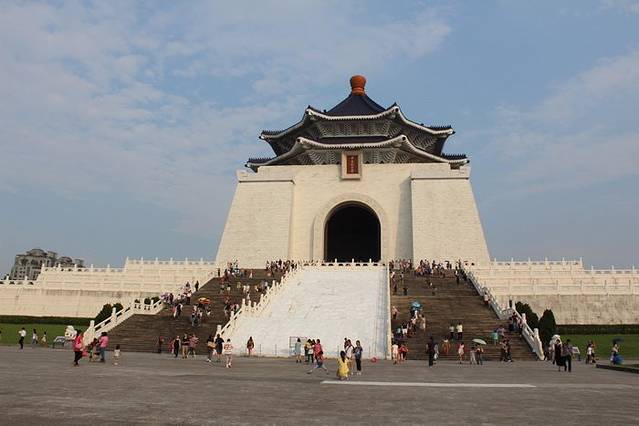 士林公园出来,时间尚早,我们便决定去往中正纪念堂参观一下。继续乘坐2号线,中正纪念堂站下车,捷运出口出来,我们先看到的是国立剧院和国立音乐厅,顺着指示牌不远便是中正纪念堂了。中正堂是“先总统”蒋介石的纪念馆,所以远远望去变给人一种宏伟而庄重的感觉。