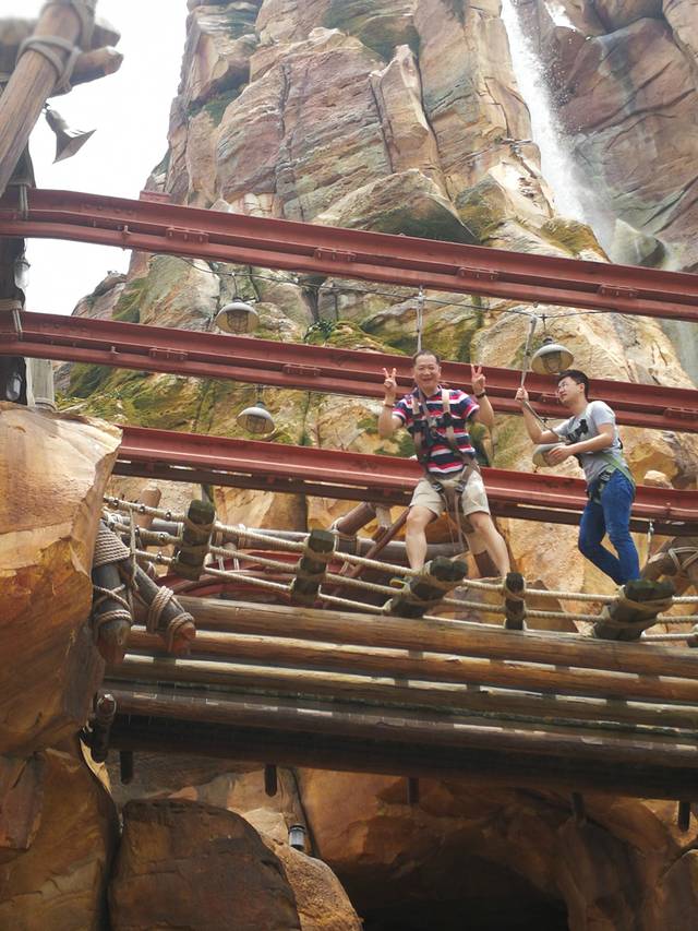 这个绳索挑战是女儿强烈要玩儿的项目,我自然要扮演好贴身保镖的角色。没想到这个项目还真有点儿挑战性,我们选择的是穿越雷鸣山的瀑布,当我们身上系着安全绳索站在瀑布的顶端,津贴悬崖峭壁穿行时,望着脚下的万丈深渊,还真有点儿不淡定呢!