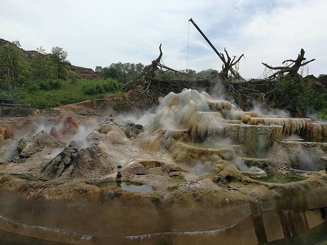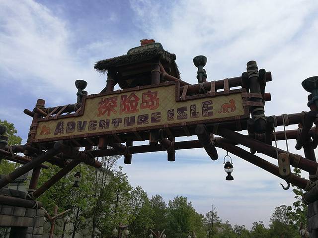 一入园,我来不及端详乐园大门口的风景,顺着右侧的步道,逆时针方向狂奔,去寻找探险岛主题景区的游客中心。工作人员很热心,有问题尽管问,他们有问必答。其实,不问也行,哪儿人多就往哪儿跑,准错不了!