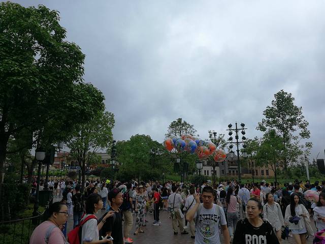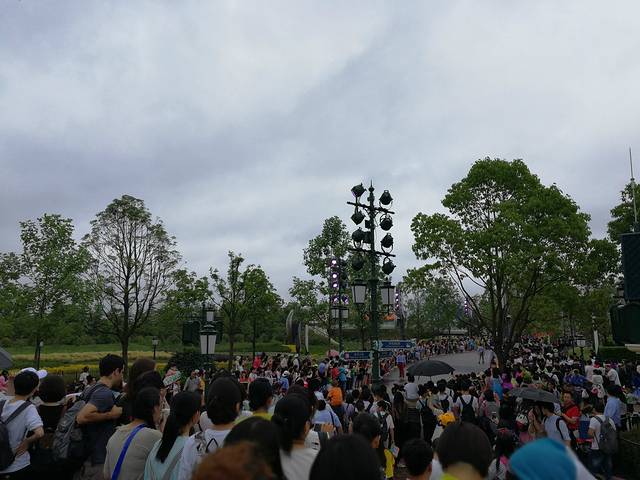 7点半不到,乐园安检通道的广场前已经是乌泱泱的一片人海了(可见早来的重要性和必要性),安检和验票还算顺利,十分钟左右进入了乐园。提醒一下,迪士尼的安检较严,所有包包都要开包验视,重点检查是否有自拍杆、是否有打开包装的食品,建议所有食品提前用一个塑料袋单独盛放,过关的速度会快很多。另外,迪士尼验票时会对每名游客视频拍照,最大限度的杜绝了黄牛从中牟利。