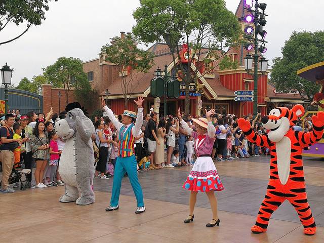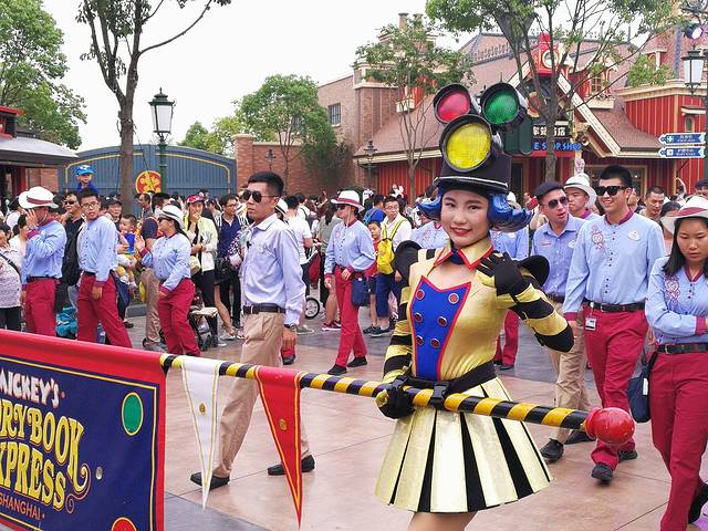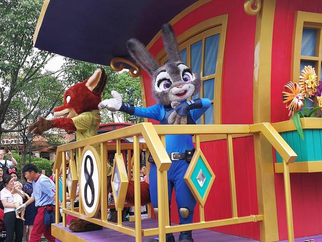 迪士尼的花车巡游很是煽情,还没开始正式表演,那欢庆的音乐声就已经使我不由自主的激动起来了。很快,演员们载歌载舞的走来了,迪士尼的影视作品真是深入人心,部部堪称经典,当玩具总动员、冰雪奇缘、疯狂动物城等动画电影人物陆续登场时,那些电影中的场景也在不断的从我脑海中掠过。