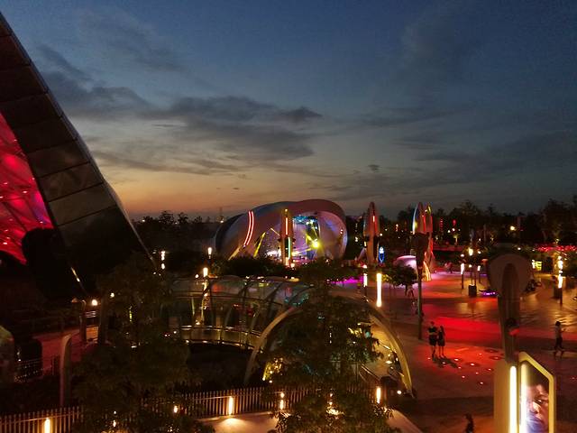 傍晚6点,我们凭借中午获得的快速通行证,第二次体验了创极速光轮的刺激,结束时仍意犹未尽。恰巧运气很好,此时游人渐少,排队也只需要20分钟,于是我们紧跟着又第三次爽了一把。