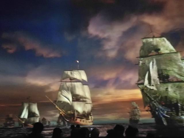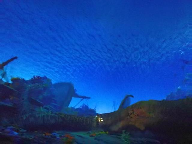 最近的就是加勒比海盗了,8点之前我们就到达了门口,设备还未开放。就在我们准备转身离去时,工作人员来了,开始组织排队入场,我们很幸运的成为了当日第一批游玩该项目的游客。加勒比海盗的游玩体验其实很棒,给了我一个很大的惊喜,全是高科技啊!当一堆枯骨瞬间华丽的变身为活灵活现的杰克船长时,所有人都惊呆了;当乘坐的船只从海底冲出海面的那一瞬,所有人都在惊呼,那感觉真是棒极了!