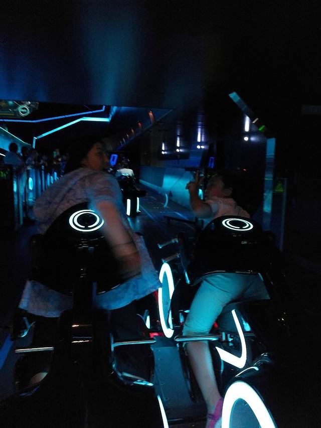 明星项目果然是明星项目啊,作为上海迪士尼人气最高的游乐项目,创极速光轮果然是名不虚传!初次体验我就爱上了它!场馆修建的超有气势,内部的装修神秘而富有科技感,从未来世界驶来的蓝色光轮摩托……处处冲击着你的视线。