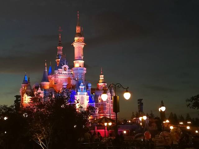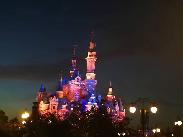 夜幕降临后,迪士尼乐园魅力不减,尤其是迪士尼城堡,在绚丽灯光的照射下,更是美轮美奂。当然,随后的焰火表演配合迪士尼的经典音乐更是一场不容错过的视听盛宴!