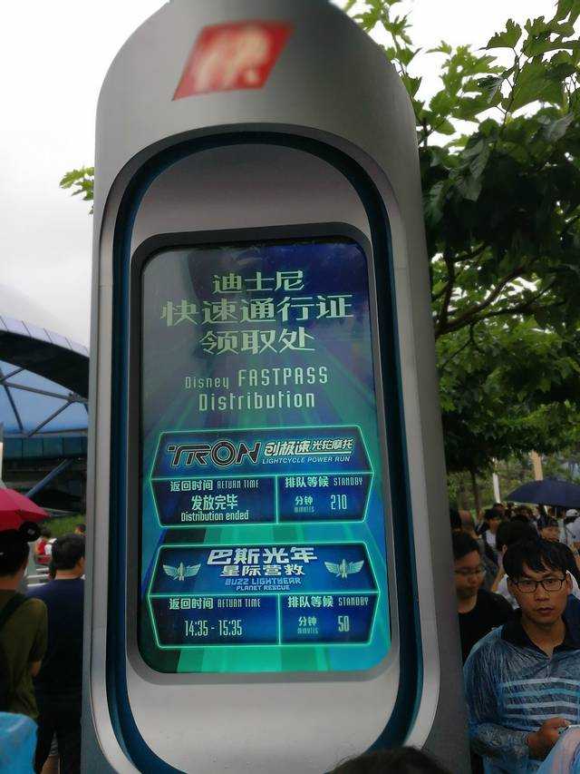 当然,运气很重要。运气不好的话,就会如上图所示——上图是我第二天再次进园的情景,由于游客太多,才刚刚上午11点钟,创极速光轮全天各个时段的快速已被哄抢一空!想体验的话,排队等候210分钟吧!