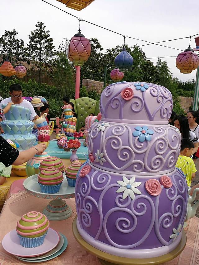 到了红皇后的聚会点,有大批精美的蛋糕、甜点模型,女儿特别喜欢,高兴的这儿看看、那儿摸摸,久久不肯离去。也许,这就是她梦中的场景吧。