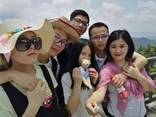没错,最后面,那个身高最高的就是大响同学,前面那个身高最矮的就是其传奇女友。