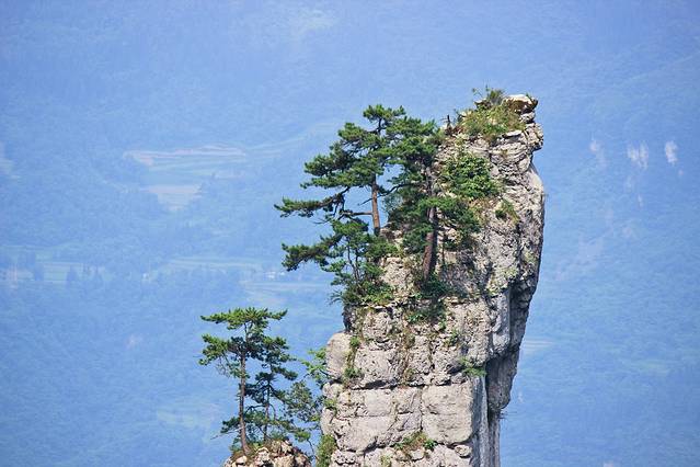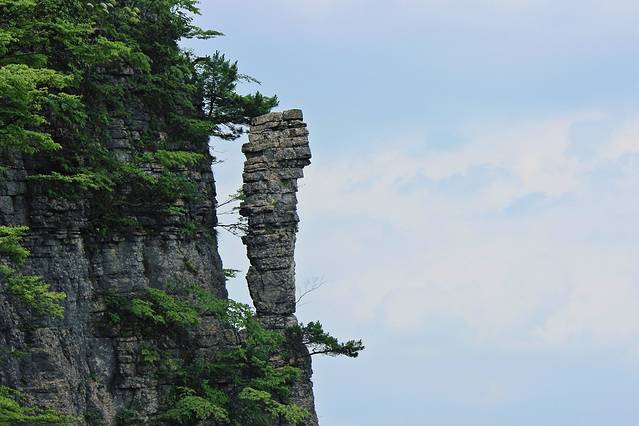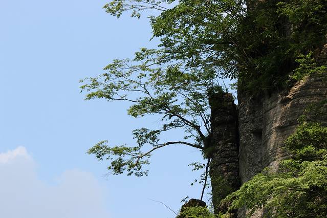 这里是恩施大峡谷的五大奇观之一的一个代表。在喀斯特地貌里,有绝壁者无峰丛,有峰丛者无绝壁。而在这里兼而有之,不得不说是个奇迹。黄山的“迎客松”,天下闻名,迎客松是张开双臂笑迎天下游客。大峡谷这棵松却代表我们好客的土家族、苗族人民向远方的游客深深地鞠个躬,既表示欢迎,又代表恭送。