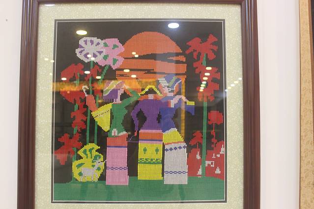 民族艺苑是土司城内专设的艺术展馆区。方圆15亩,4栋仿民居的建筑,青砖青瓦,坐落其间。展馆前场地,独具匠心地按土家织锦西兰卡普的几何图案"双八钩"进行布局,呈二方连续展开而组合成形,以"一串红"和"女贞子"花木,按图形栽植。红绿相映相衬,亮丽夺目。其中心按仿根雕雕塑,设置作展区标志。除此,花圃中还植有四时花草,以象征艺术繁花似锦、争妍斗胜,四季常开不败。