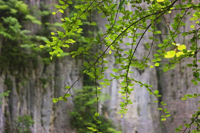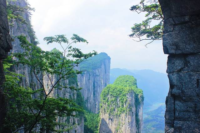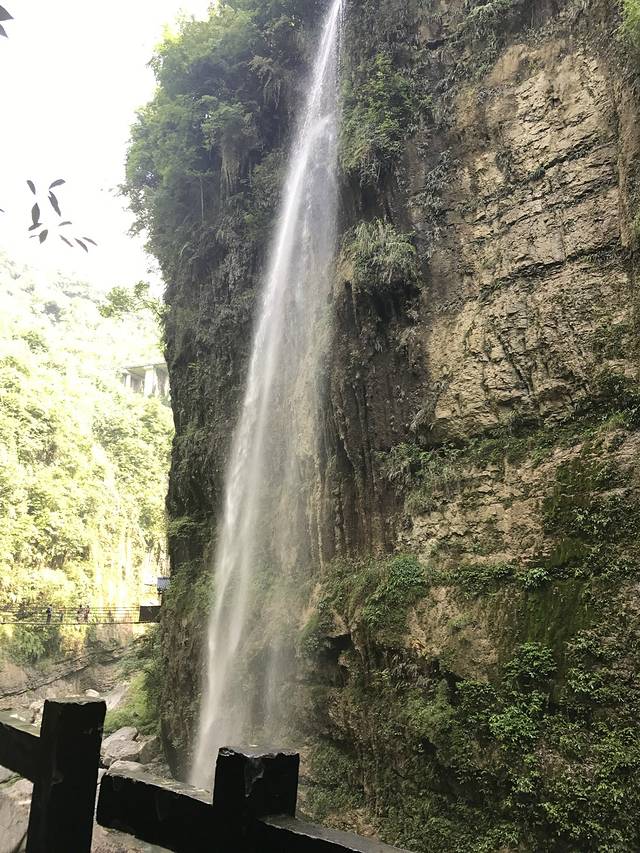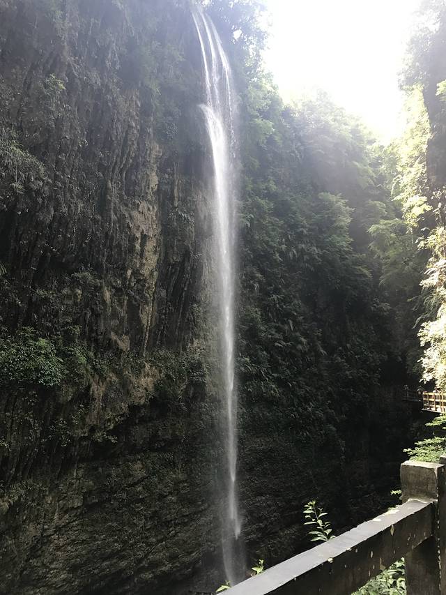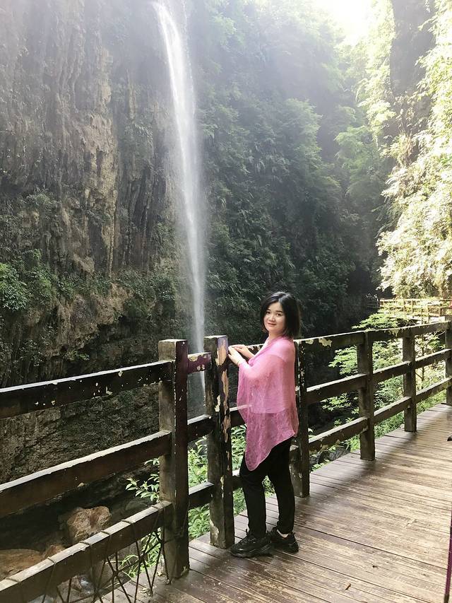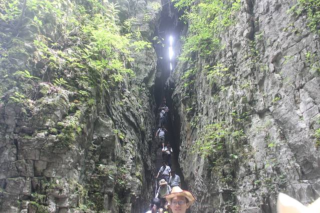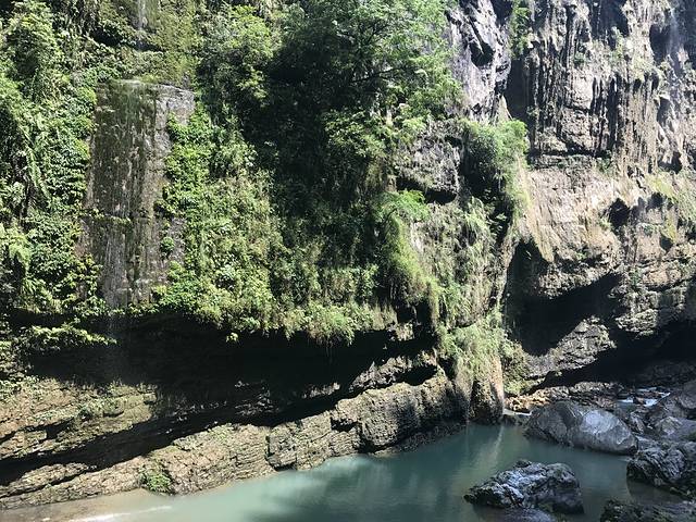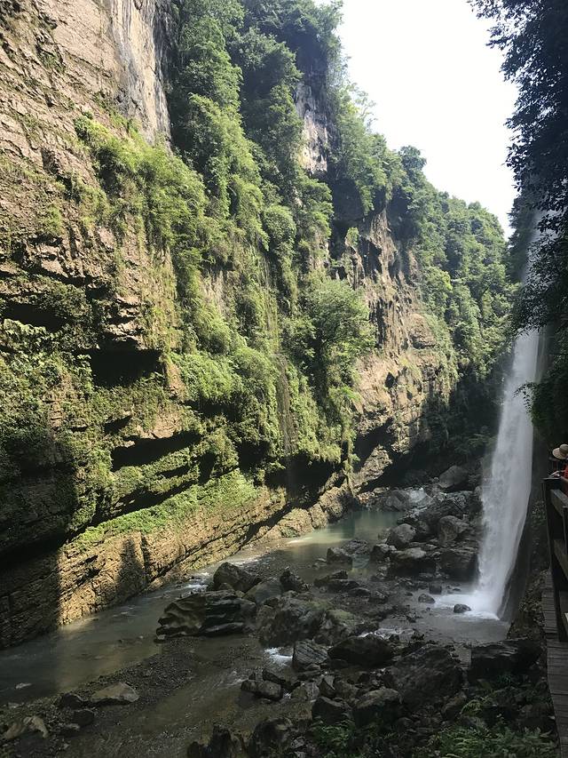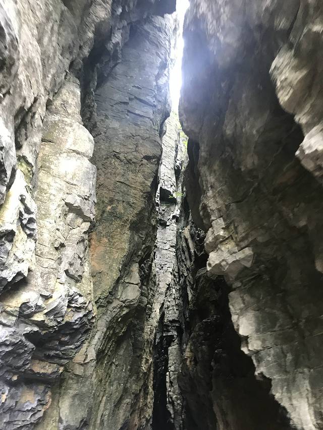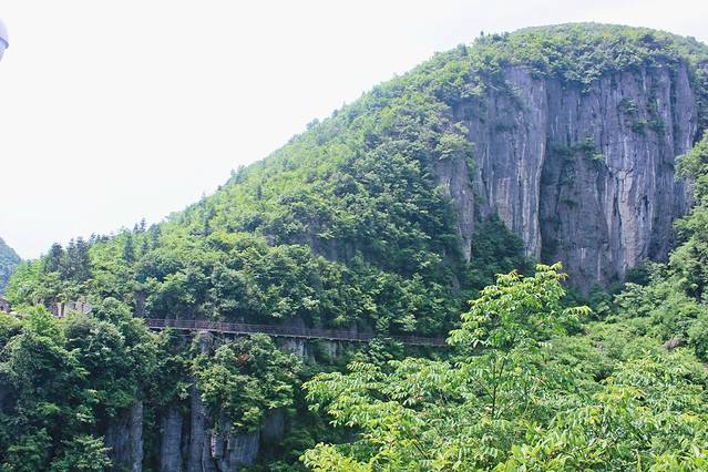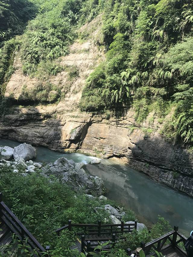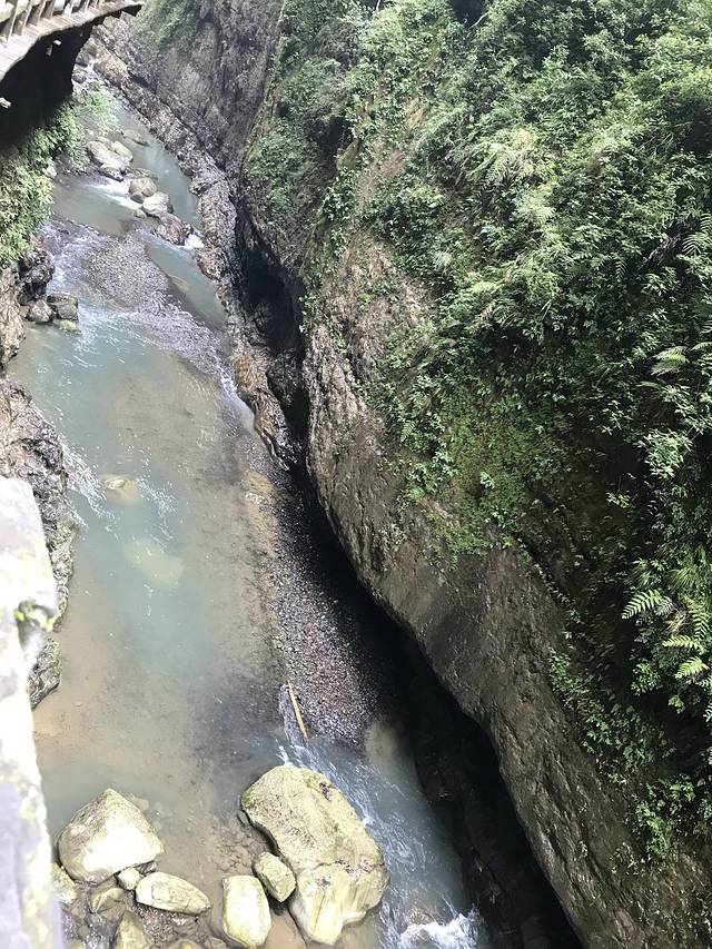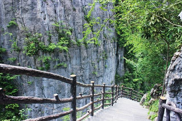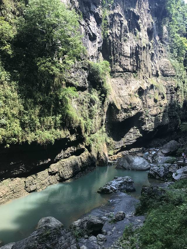 走完绝壁栈道,顺着游道,走到一很深的山谷中。