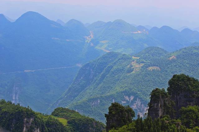 大峡谷的核心景区是七星寨,坐缆车可以直接抵达。我们是坐景区公交上去的。