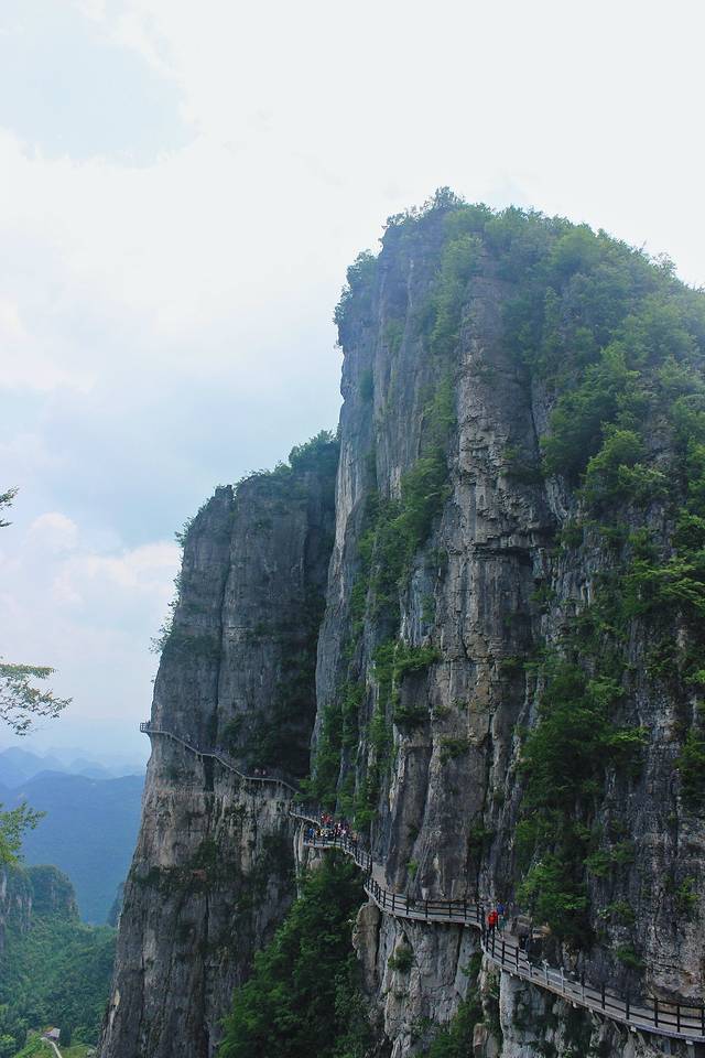 绝壁长廊,又叫“绝壁栈道”,始建于2007年10月,全长488米,118个台阶。当你沿着栈道游览,一路可以欣赏大武陵风光。该栈道共有七道弯八道拐,寓意是:路七弯八拐,心始终如一。