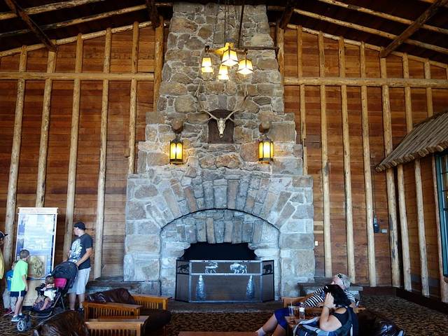 老忠实酒店的墙壁和房梁均由黑松木建成,还有一个火山石砌成的壁炉。乡村风格的木制外观和内部装修看起来十分质朴、优雅,是园内最受欢迎的酒店。