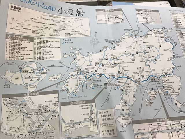 乘船到小豆岛后,在出站口买通票,附送的地图上有班车时间表及景点路线,一定做好时间安排,由远及近游览