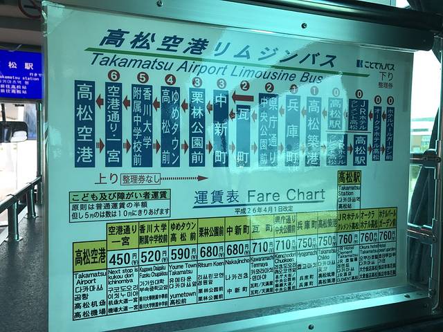 高松机场很小,过关也很快,行李出来的更快,拿了行李,转巴士去酒店,酒店在市中心巴士站是瓦町,吃饭购物去码头都很方便 ,如果有送栗林公园门票,需要在机场取好,我们就忘记取,但算下门票没有巴士票更值钱,也就放弃回取了。