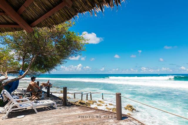 躺在水屋的躺椅上看碧海蓝天,放空一切。