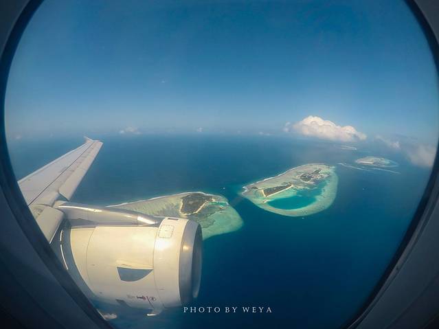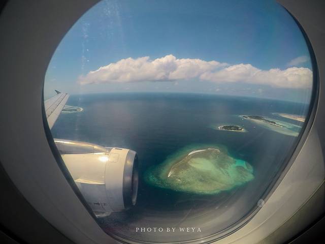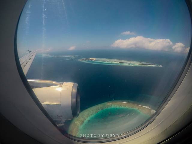 因为是第二次来马尔代夫,我很清楚在飞机下降的时候能看到怎样的风景,于是提前准备好了相机。