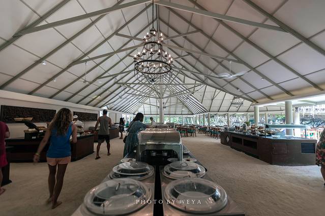 白金岛是一价全包的,早中晚餐都是自助餐,而水屋沙屋的餐厅是分开的。