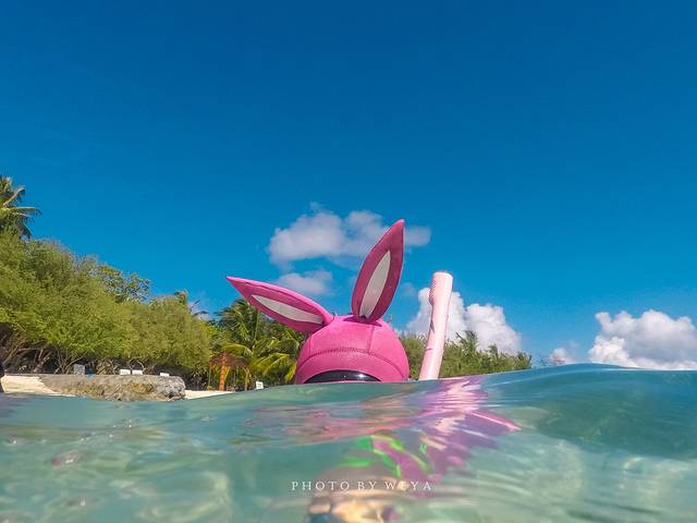 没错我又把我的兔耳朵戴上了,这已经是我的标志性潜水饰物了。
