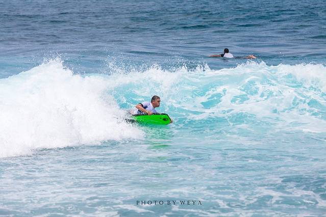 白金岛三面都有远处的防浪堤,所以有三面的海都是平静适合浮潜的,而有一面因为没有防浪堤,所以滚滚浪群造就了这个初级冲浪者的天堂。