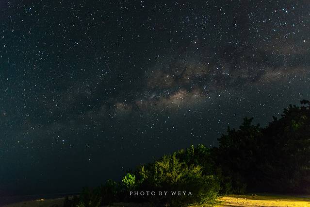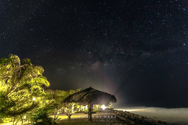 我和小伙伴在星河下徒步走完整个岛,最后在日出沙屋的海滩停留,这里的地面光线最小,银河尤为明显。